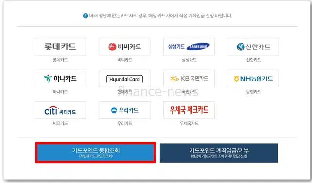 1. 여신금융협회 홈페이지접속 카드포인트 통합조회 &계좌입금 클릭