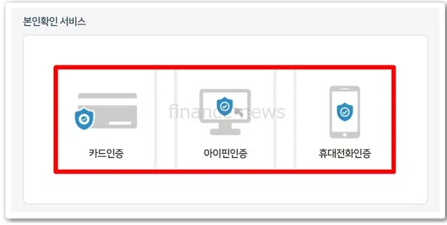 5.본인확인: 카드,아이핀,휴대폰중 선택하여 본인확인을 진행하세요.
