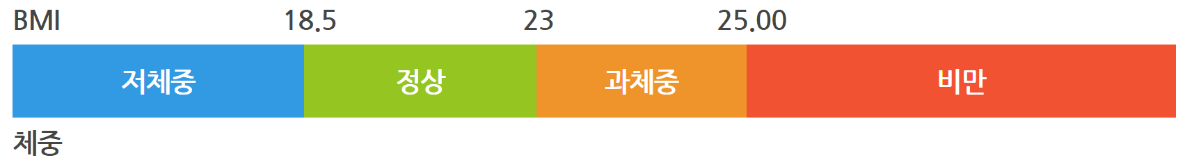 BMI지수는 비만정도를 판단하는데 도움을 주며 다음과 같이 분류됩니다.