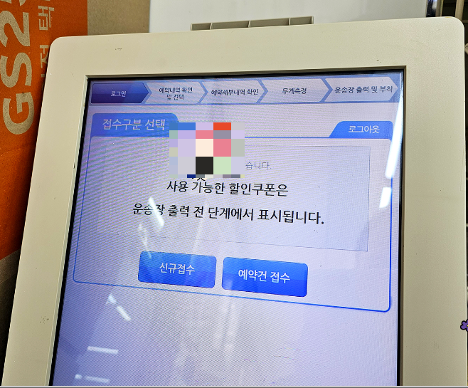 3. 접수정보를 확인하시고 무인포스기 아래에 소포 무게 재는 곳이 있습니다. 무게를 재면 중량과 총 운임가격이 나옵니다. 쿠폰적용하면 최종적으로 운임 가격이 나온후 결제하면 끝입니다.